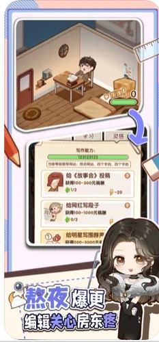 3、容易的玩法,休闲的手游模式,不用伤肝也可以享受到作家生活的点点滴滴。